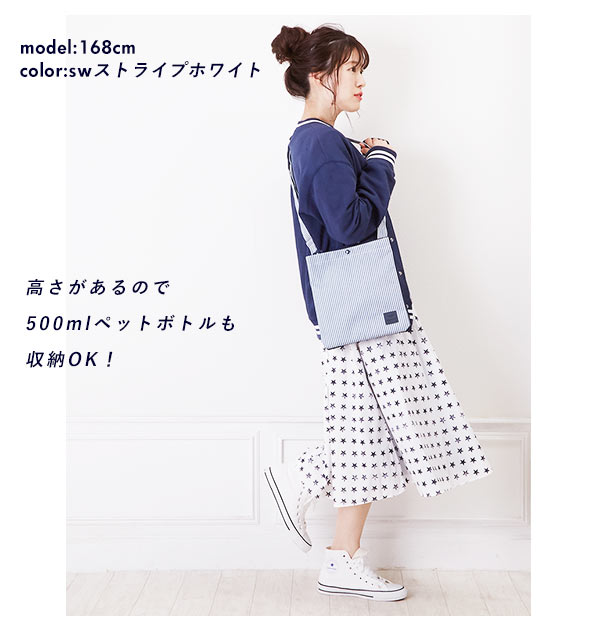 小さめですが高さもあるので500mlペットボトルや長財布も収納出来ます。
