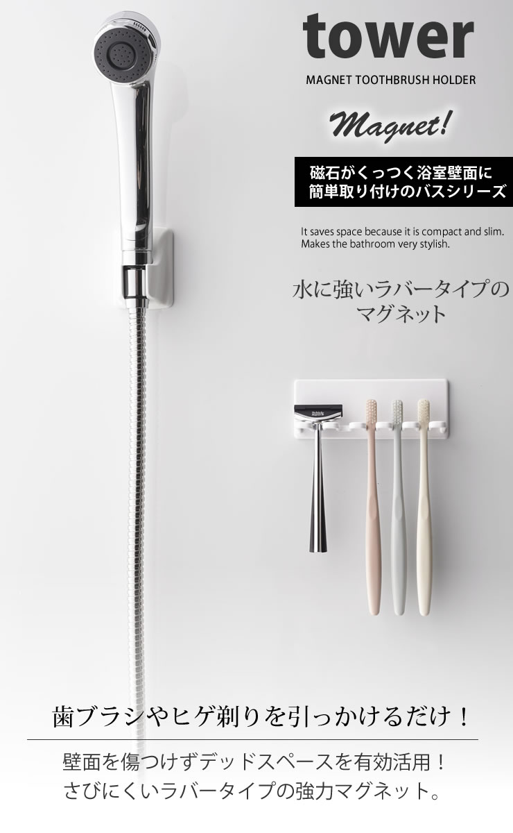 マグネットバスルーム歯ブラシホルダー 5連 タワー(tower)[山崎実業]強力磁石 耐水 便利 白 黒 おしゃれ 北欧 シンプル【ポイント10倍】【フラリア】