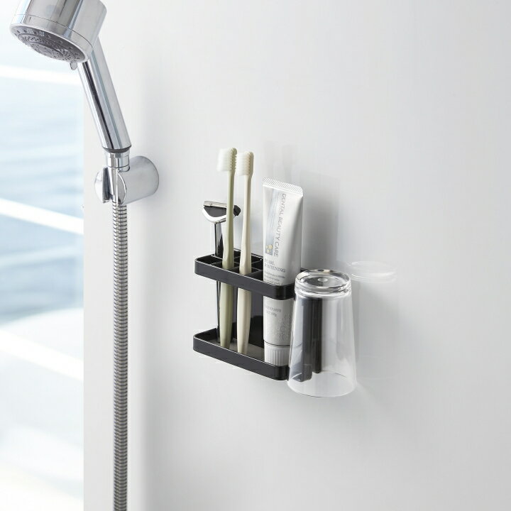 yamazaki マグネットバスルーム トゥースブラシスタンド tower タワー 使ってポイになっていた歯ブラシやタンブラー、シェーバーなどの毎日使う歯磨きグッズをまとめて収納できるトゥースブラシスタンド。