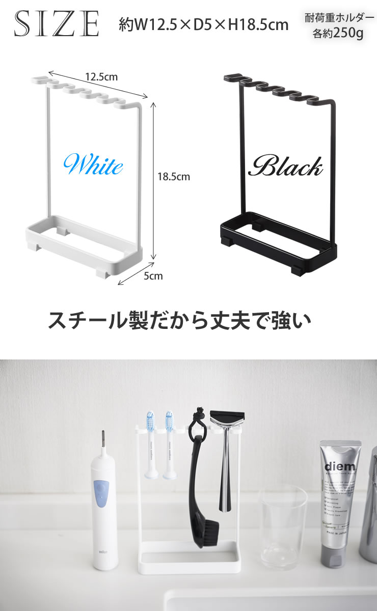 歯ブラシスタンド 5連 タワー(tower) / 山崎実業 YAMAZAKI 仕様 サイズ:約幅12.5cm×奥行5cm×高さ18.5cm 商品重量:約190g 耐荷重:1ホルダー約250g 材 質:スチール(粉体塗装+ユニクロメッキ) 滑り止め:シリコーン デザイン:日本/原産国:中国 ※WEB上のため、実物と画像の色が、多少違う点がございます。