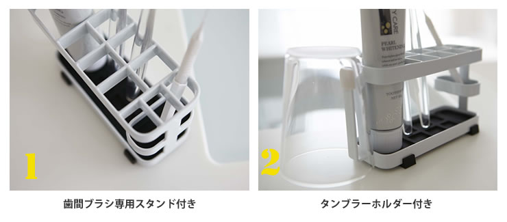 トゥースブラシスタンド tower(タワー) ワイド / 山崎実業 歯ブラシ・歯間ブラシ・歯磨きチューブ・タンブラーを一括収納! サイズ 約W14.5×D5×H8cm 材質 本体/スチール(ユニクロメッキ+粉末塗装) マット・キャップ/シリコン樹脂 カラー ホワイト・ブラック 付属品 クッション4個 原産国 中国 →タワーシリーズはこちらから 山崎実業 YAMAZAKI 歯ブラシ 歯間ブラシ 歯みがき スタンド ホルダー 歯ブラシ立て 洗面所 収納 はぶらし ハブラシ ホワイト ブラック ※WEB上のため、実物と画像とで色など、多少違う点がございますのでご理解ください。