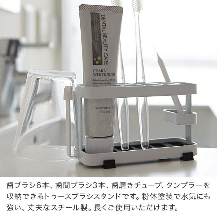 スタイリッシュに一括収納!歯ブラシ6本、歯間ブラシ3本、歯磨きチューブ、タンブラーを収納できるトゥースブラシスタンドです。