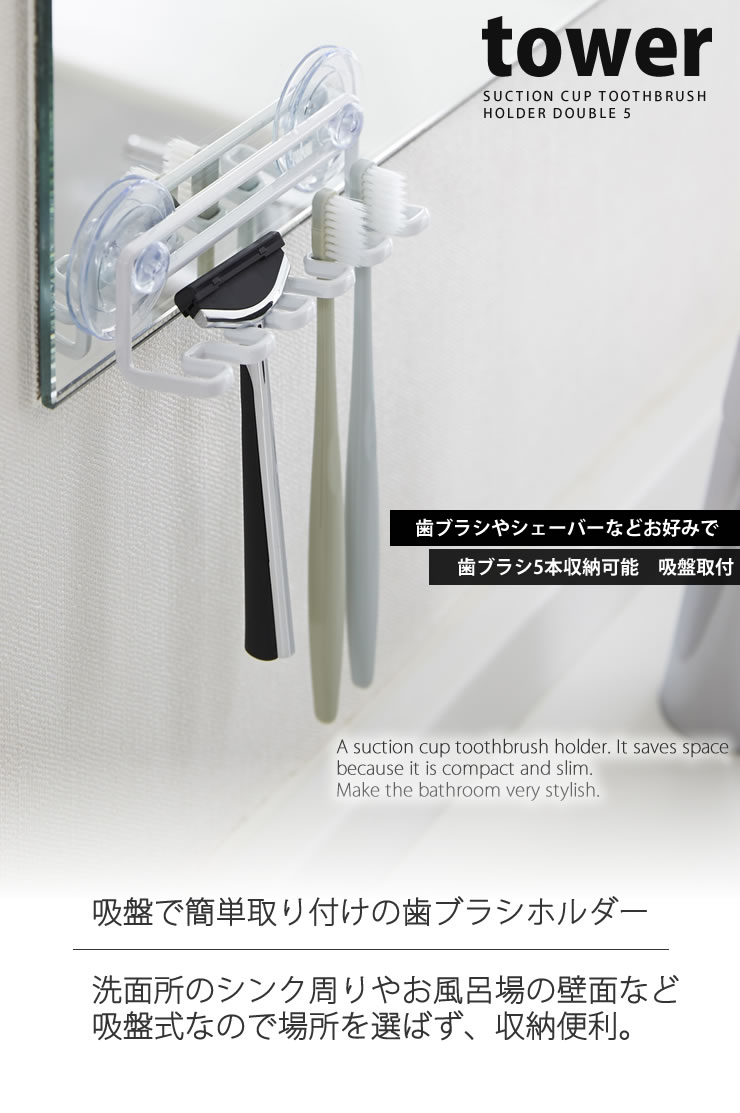 吸盤トゥースブラシホルダー 5連 タワー(tower)[山崎実業]歯ブラシスタンド シンプル コンパクト おしゃれ【ポイント10倍】【フラリア】