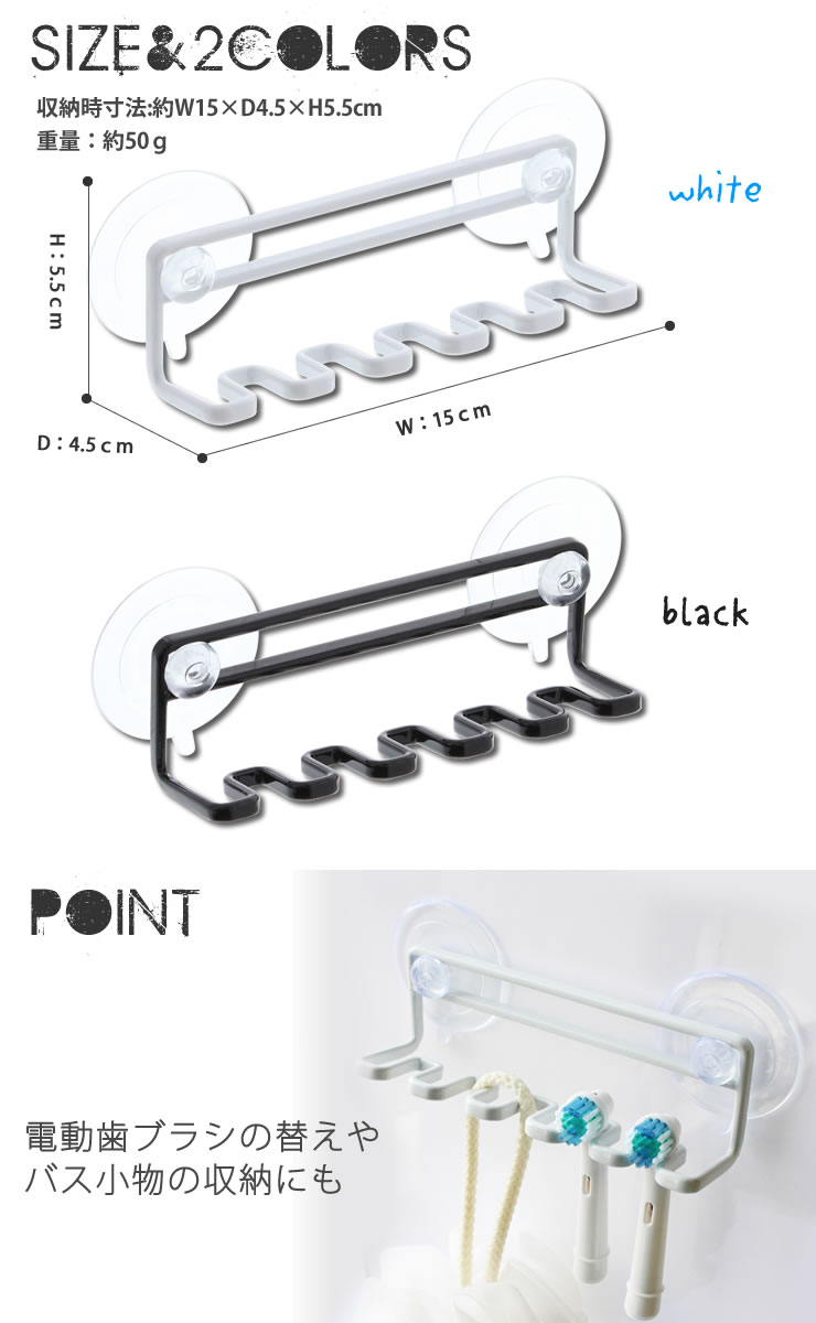 電動歯ブラシの替えや、シェーバーも掛けたりできます。